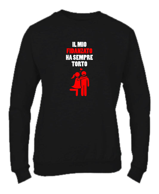 Felpa Girocollo DONNA & BAMBIN - IL MIO FIDANZATO HA SEMPRE TORTO - Super vestibilità Top qualità