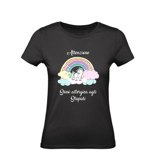 T-Shirt Donna- ATTENZIONE SONO ALLERGICA AGLI STUPIDI - Maglietta Maglia Tshirt Super vestibilità Top qualità