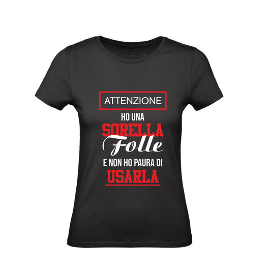 T-Shirt Uomo, Donna & Bambino - ATTENZIONE HO UNA SORELLA FOLLE E NON HO PAURA DI USARLA - Maglietta Maglia Tshirt Super vestibilità Top qualità