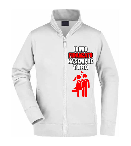 Felpa Unisex Full Zip - IL MIO FIDANZATO HA SEMPRE TORTO - Super vestibilità Top qualità