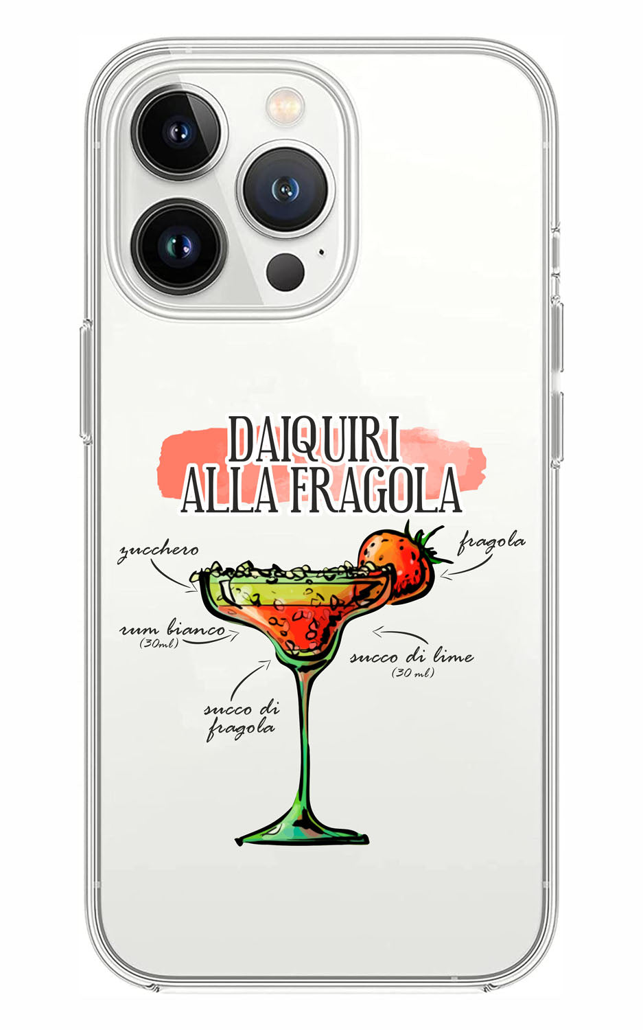 Cover Compatibile Con Tutti i Modelli iPhone - DAIQUIRI ALLA FRAGOLA - Trasparente UltraSottili AntiGraffio Antiurto Case Custodia Marca