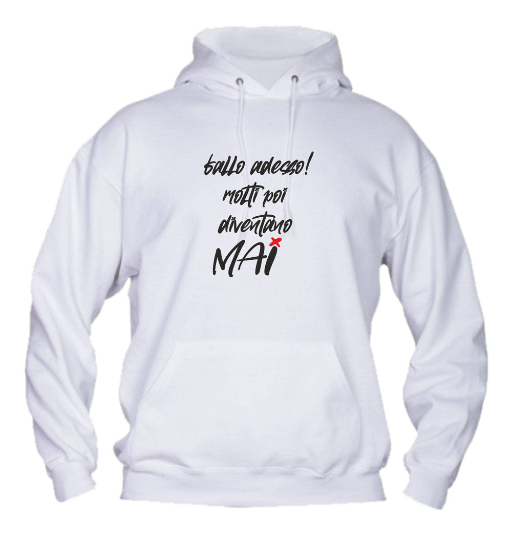 Felpa con cappuccio UOMO, DONNA & BAMBIN - FALLO ADESSO MOLTI POI DIVENTANO MAI - Super vestibilità Top qualità