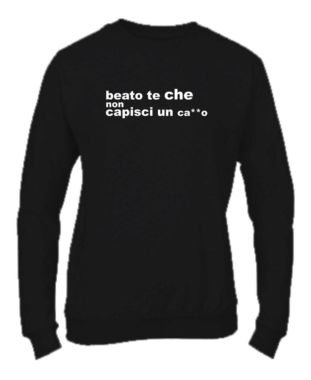 Felpa Girocollo UOMO, DONNA & BAMBIN - BEATO TE CHE NON CAPISCI UN CAZZO - Super vestibilità Top qualità