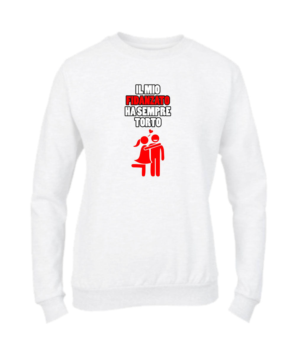 Felpa Girocollo DONNA & BAMBIN - IL MIO FIDANZATO HA SEMPRE TORTO - Super vestibilità Top qualità