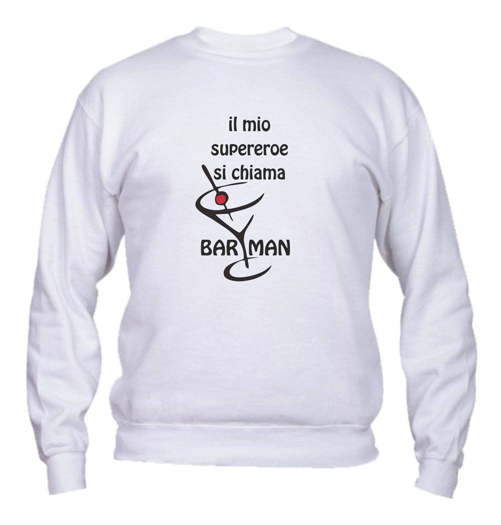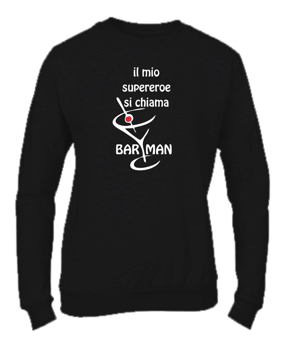 Felpa Girocollo UOMO, DONNA & BAMBIN - IL MIO SUPEREROE SI CHIAMA BARMAN - Super vestibilità Top qualità